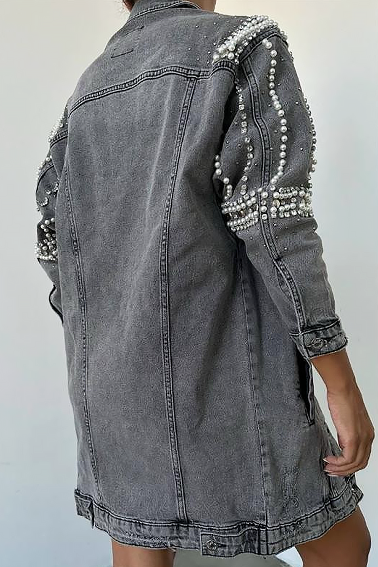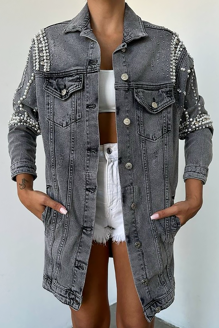 - Θα είστε υπέροχοι με αυτό! Το μοντέλο έχει oversize γραμμή, τσέπες και ελκυστικό σχέδιο με πέρλες.