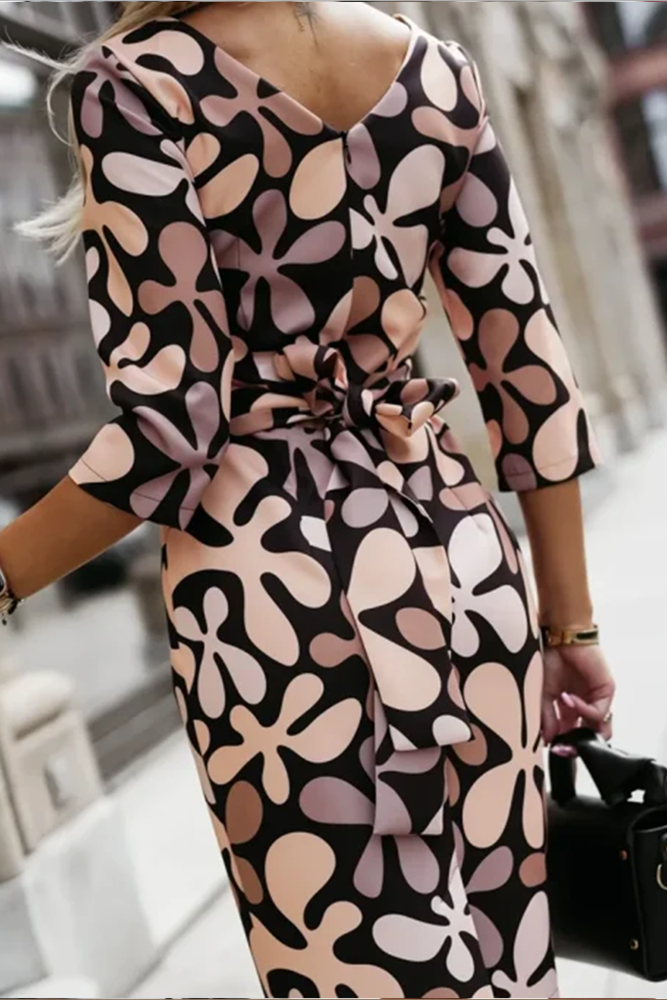 - Το μοντέλο έχει 3/4 μανίκια, ελκυστικό μοτίβο και κοντό μήκος.