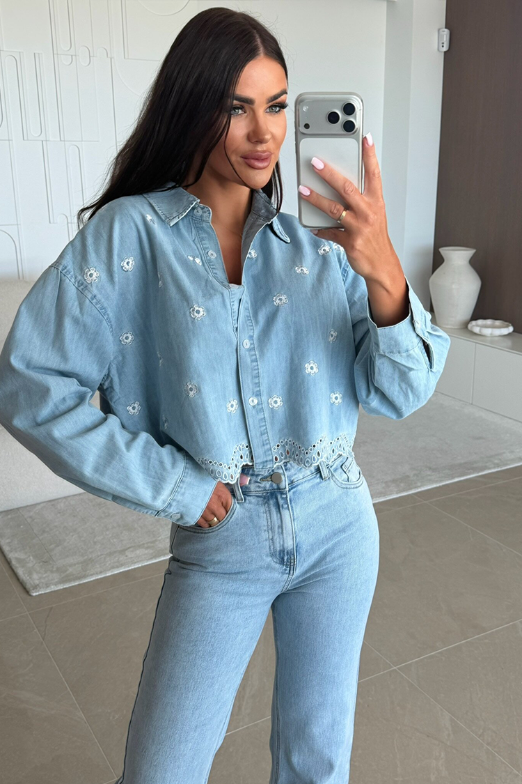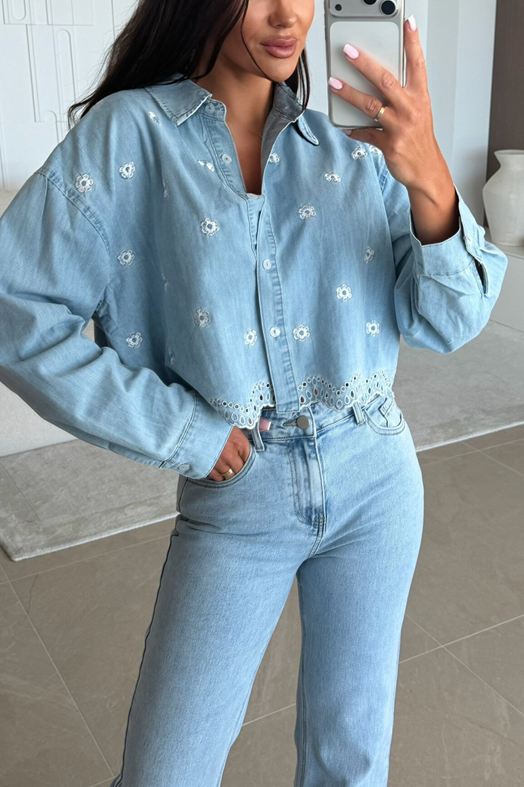 - Το μοντέλο έχει μακριά μανίκια, γιακά, κλείνει με κουμπιά και έχει ελκυστικό σχέδιο με λουλούδια.