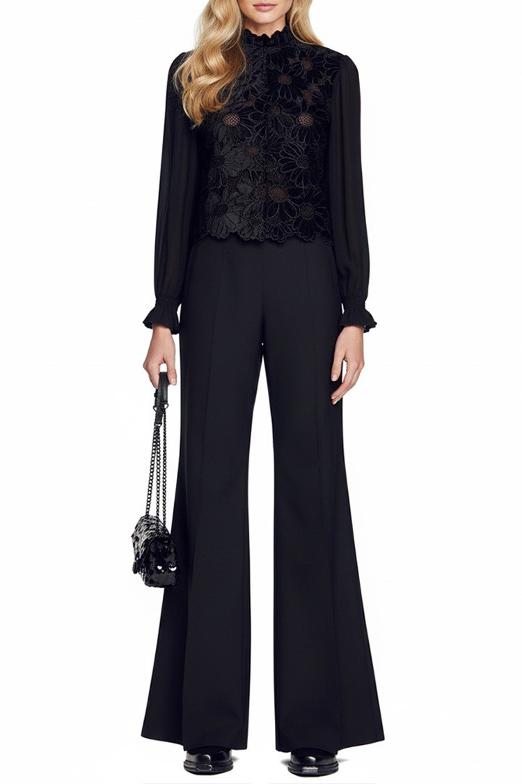 - Κομψή μπλούζα σε κλασικό μαύρο χρώμα με όμορφη λουλουδάτη δαντέλα με βελούδινη υφή.