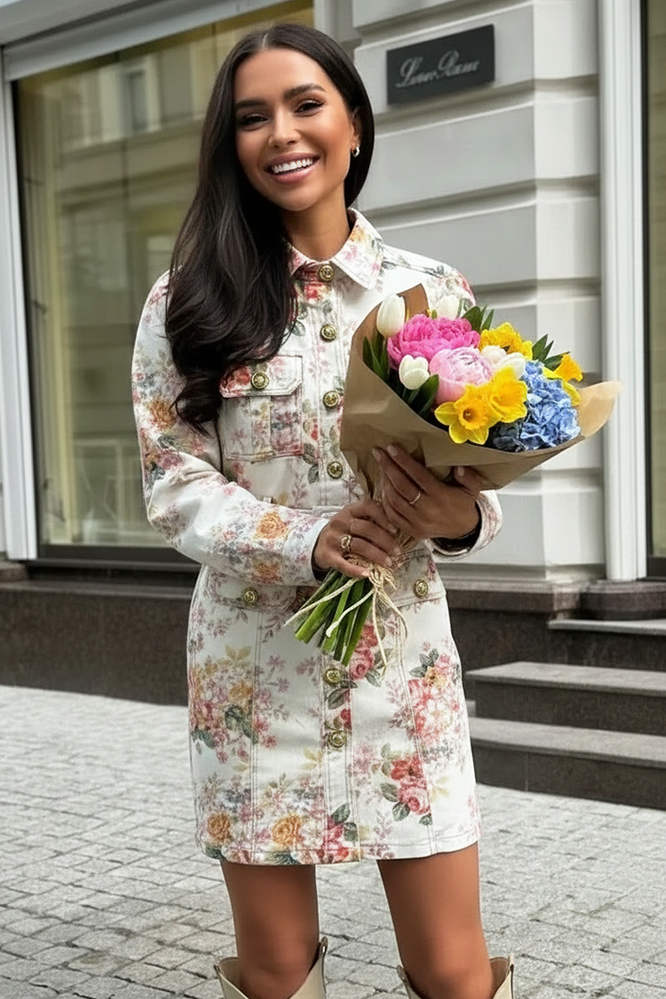 - Για μια ελκυστική εμφάνιση, επιλέξτε αυτό το κοντό, τζιν φόρεμα με floral μοτίβο, κατάλληλο για καθημερινή χρήση.