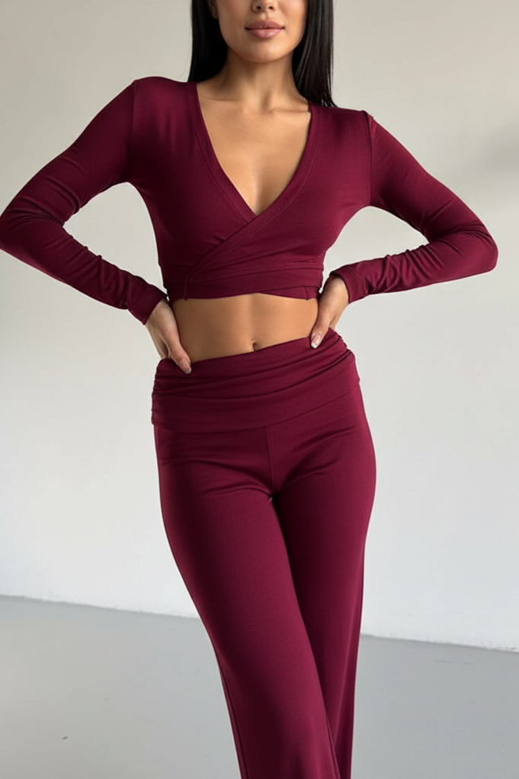 - Η μπλούζα είναι κοντή και έχει λαιμόκοψη σε σχήμα V.