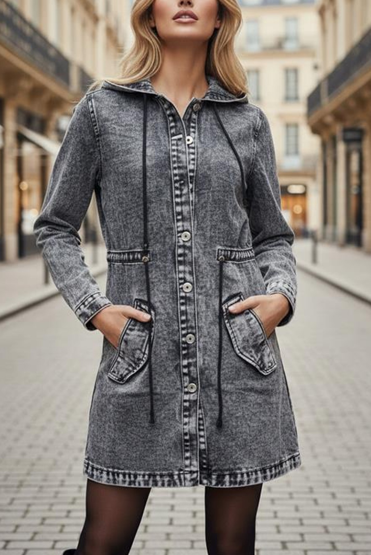 - Κουμπώνει με κουμπιά κατά μήκος μπροστά.