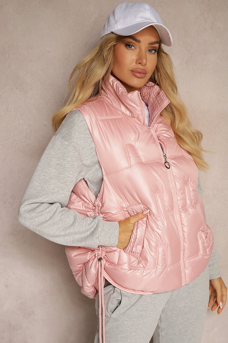 - Το γιλέκο έχει κλασική γραμμή, άνετο γιακά, κοντό μήκος και καπιτονέ σχέδιο.