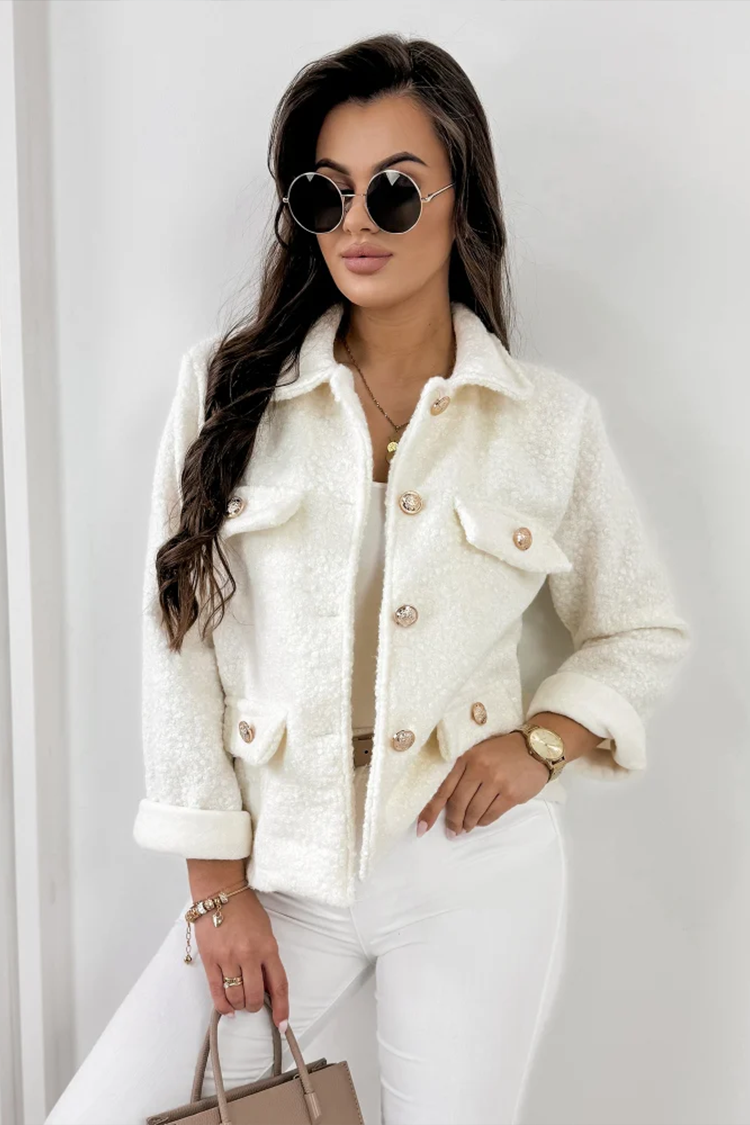 - Το μοντέλο έχει άνετη γραμμή και κλείνει με κουμπιά στο μπροστινό μέρος.