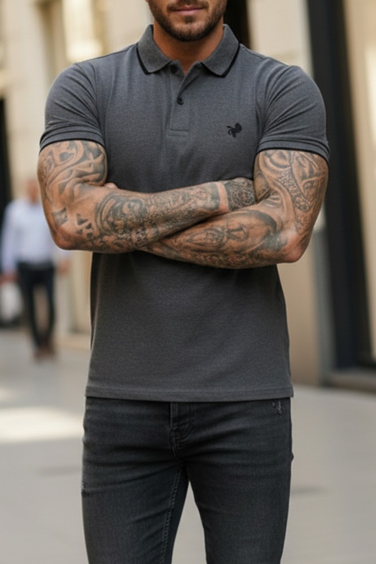 - Κομψό μοντέλο μπλουζάκι με γιακά με κουμπιά και λιτό σχέδιο, κατάλληλο για διάφορες περιστάσεις και μοντέρνες συνδυασμούς.