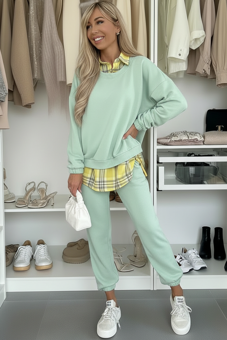 - Η μπλούζα έχει άνετη γραμμή και εντυπωσιακό γιακά με καρό μοτίβο.