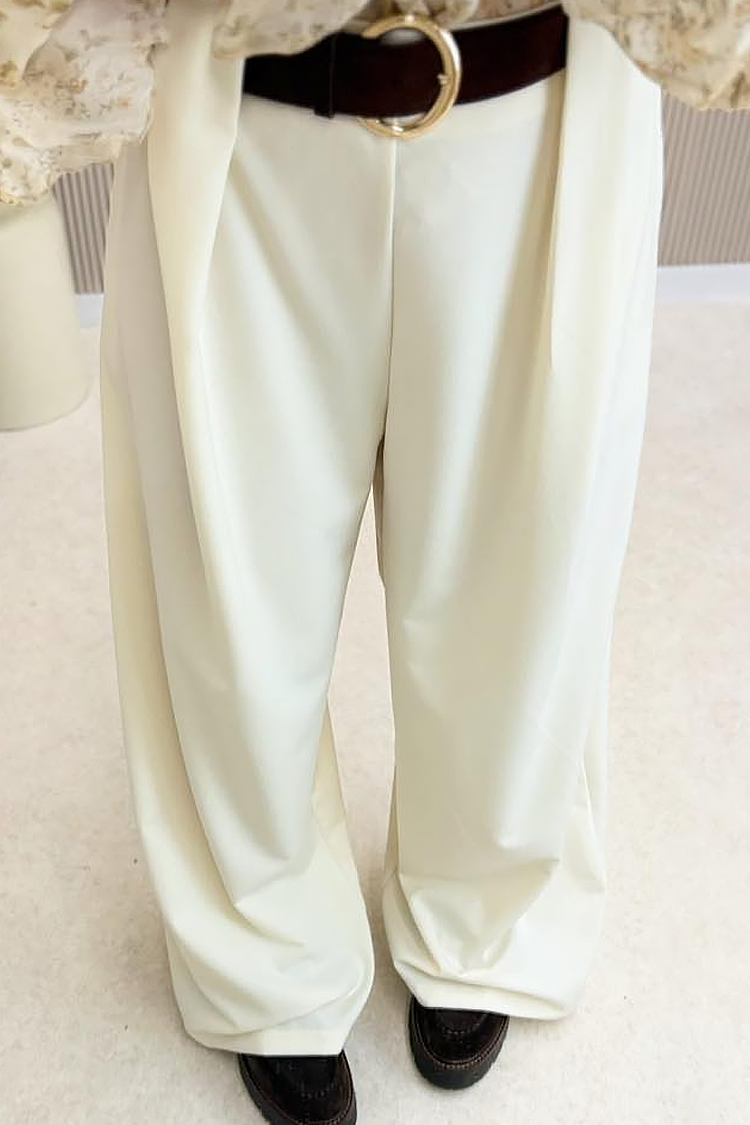- Το μοντέλο έχει ψηλή μέση, πλαϊνές τσέπες, εντυπωσιακές σούρες και σταθερή ζώνη.