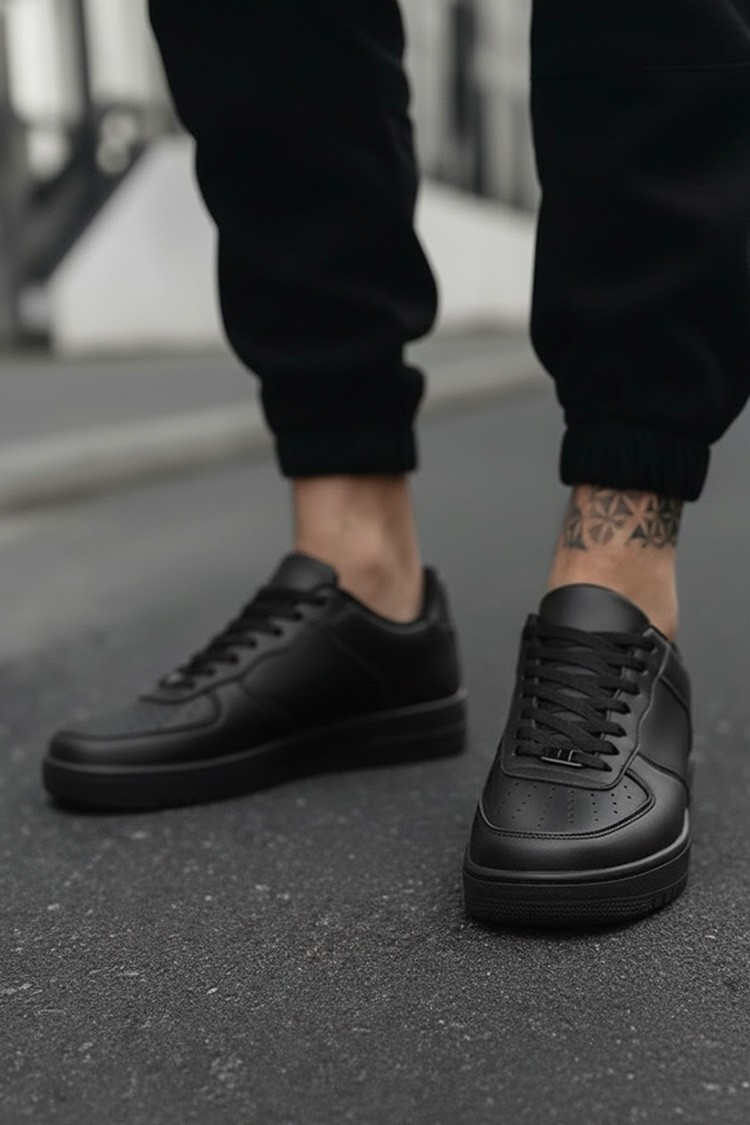 - Μοντέρνα ανδρικά πάνινα παπούτσια σε μαύρο χρώμα, κατασκευασμένα από οικολογικό δέρμα, κατάλληλα για καθημερινή χρήση.