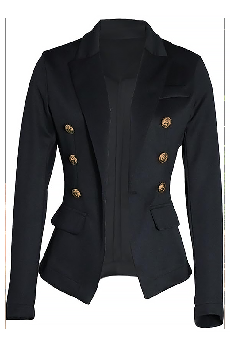 - Το μοντέλο έχει κομψή γραμμή, μαύρο χρώμα και χρυσά κουμπιά.