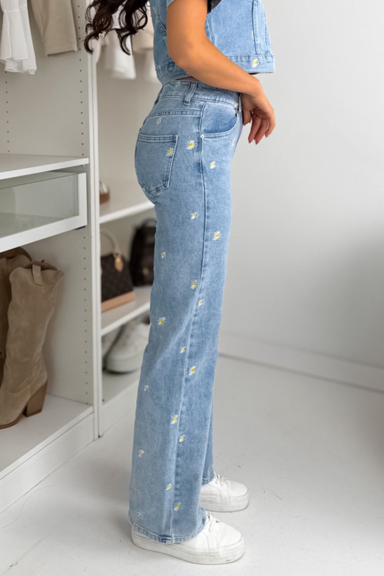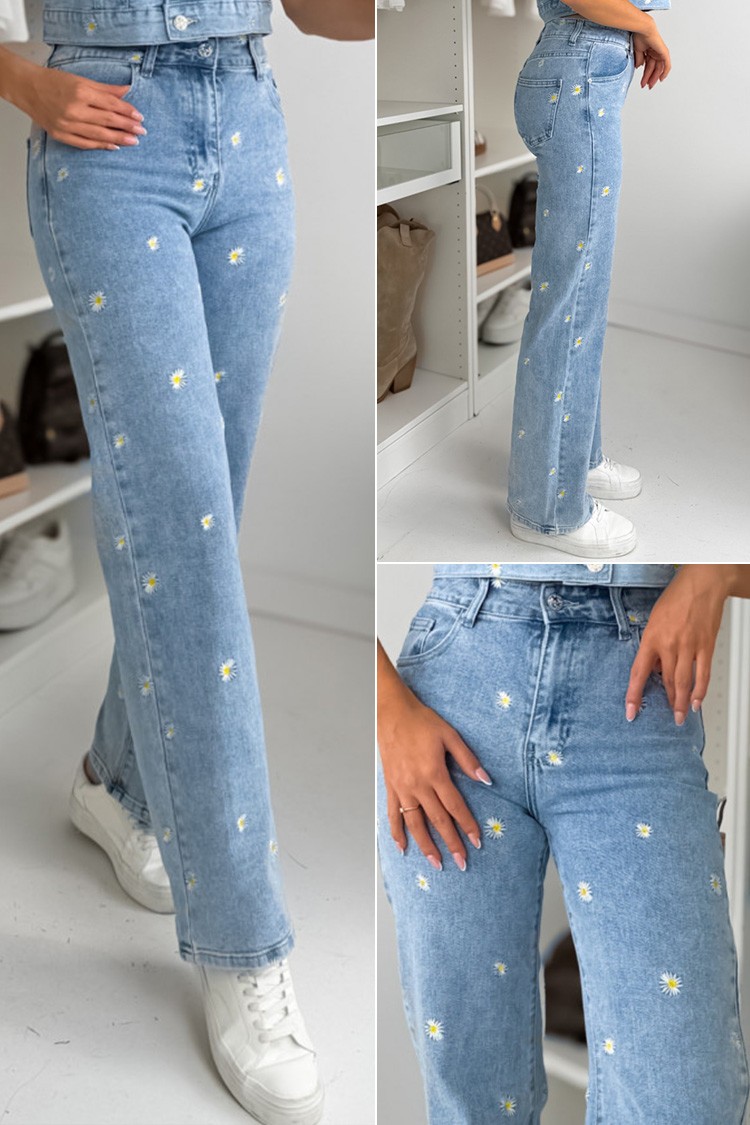 - Το μοντέλο έχει ψηλή μέση, τσέπες, φαρδιά γραμμή, μοντέρνο σκισμένο εφέ και ανοιχτό μπλε σχέδιο.