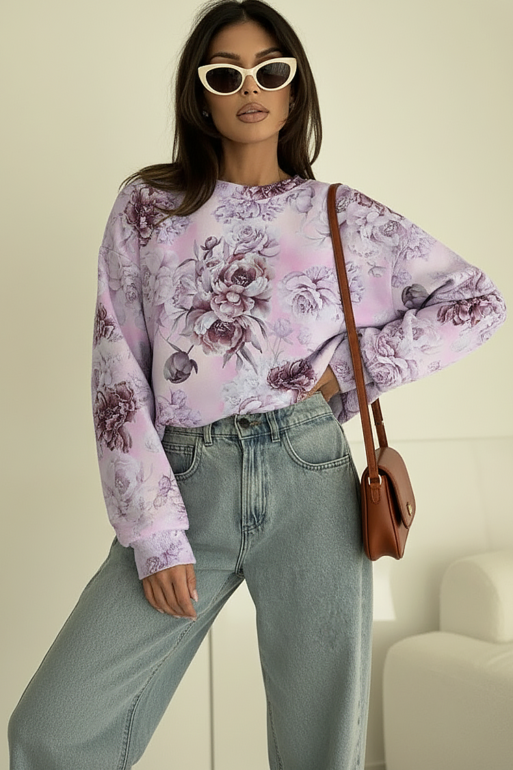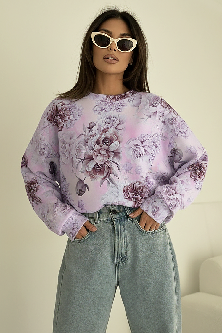 - Το μοντέλο έχει μακριά μανίκια, ελεύθερη γραμμή και εντυπωσιακό floral μοτίβο.