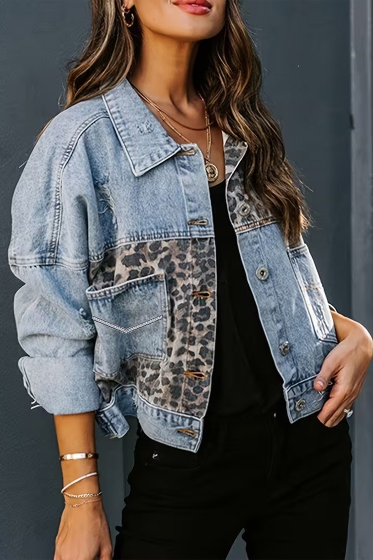 - Κουμπώνει με κουμπιά κατά μήκος μπροστά και διαθέτει τσέπες, γιακά και λεπτομέρειες με λεοπάρ μοτίβο.
