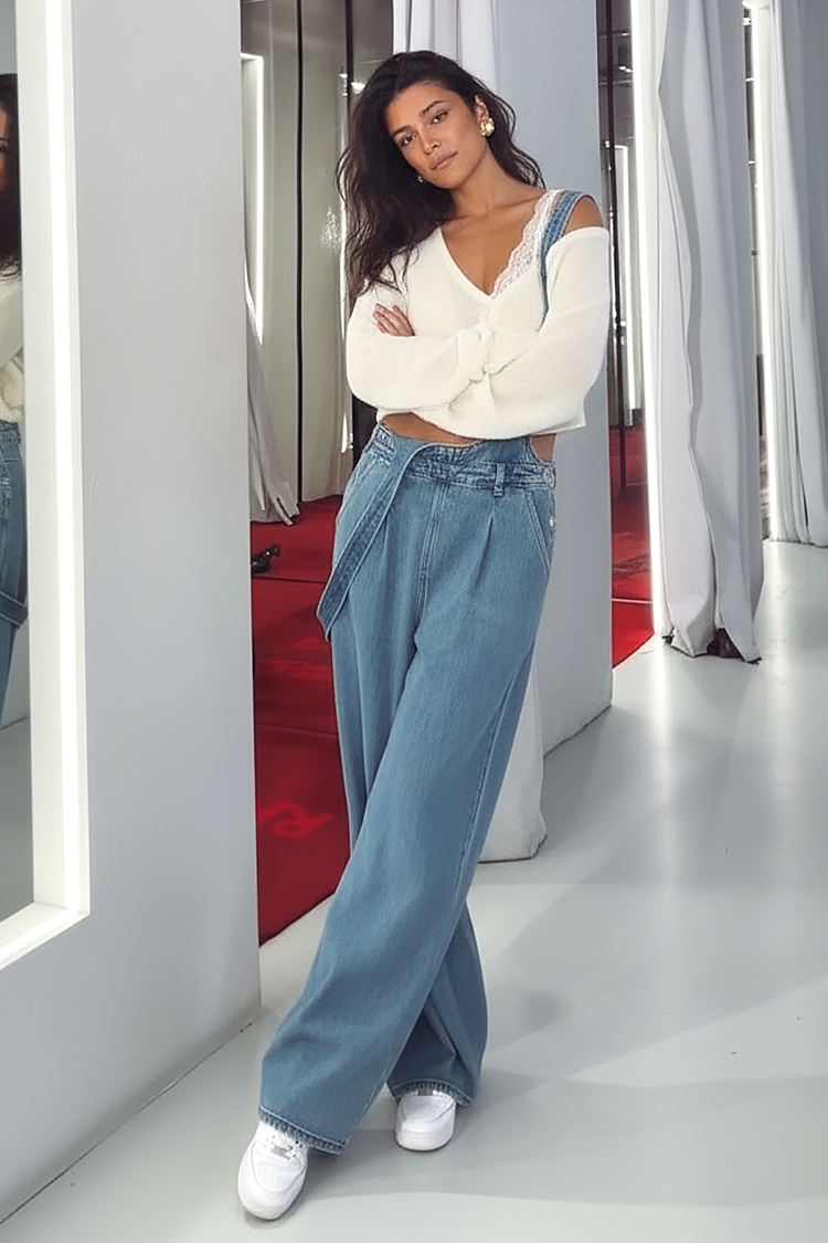 - Για μια ολοκληρωμένη εμφάνιση, σας συμβουλεύουμε να τα συνδυάσετε με ένα crop top, ένα μπουφάν από οικολογικό δέρμα ή πάνινα παπούτσια.