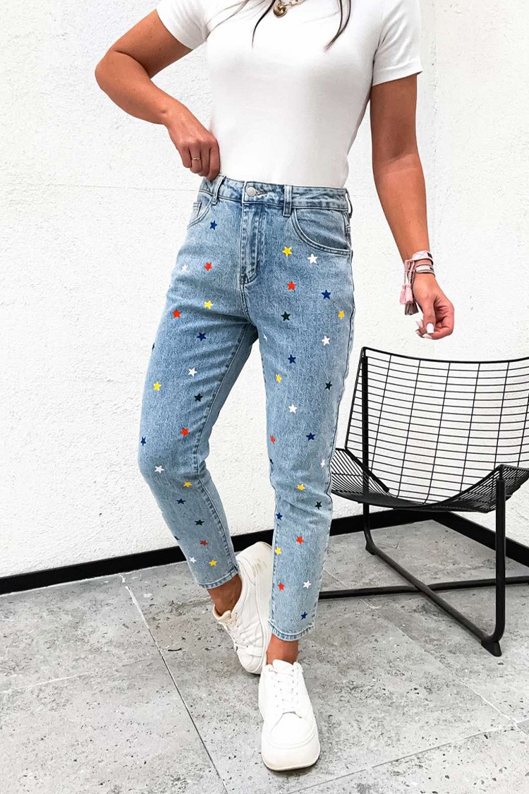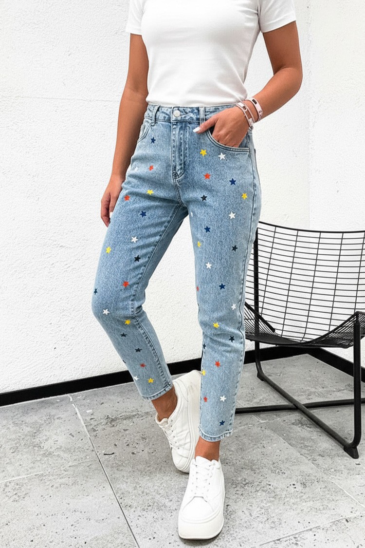 - Το μοντέλο έχει ψηλή μέση και κλασική γραμμή και χρωματιστό μοτίβο με αστέρια.