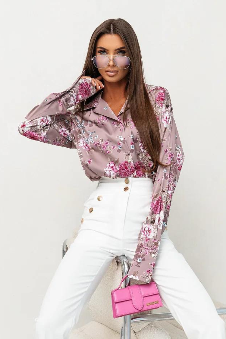 - Το μοντέλο έχει μακριά μανίκια, κλασική γραμμή, γιακά, κουμπιά και floral σχέδιο.