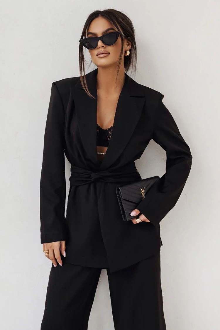- Το σακάκι έχει άνετη γραμμή και εντυπωσιακή ζώνη, την οποία μπορείτε να φορέσετε με διάφορους τρόπους.