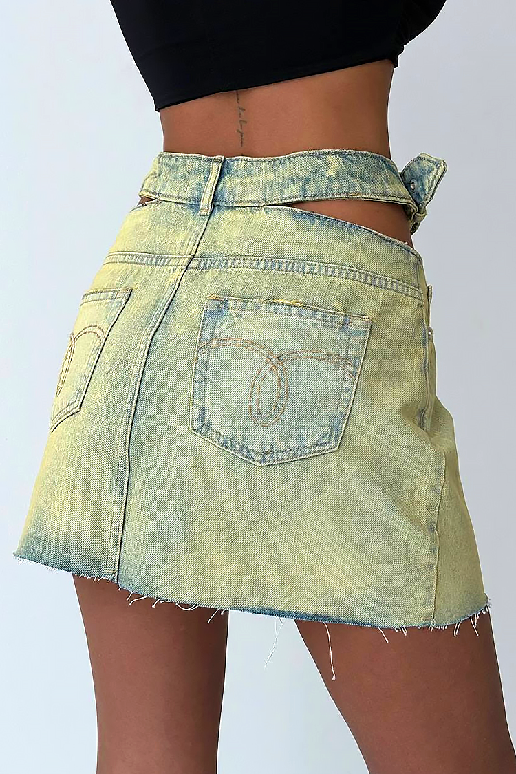 - Μοντέρνα φούστα με κοντό μήκος, κατασκευασμένη από υψηλής ποιότητας denim, κατάλληλη για διάφορες περιστάσεις.