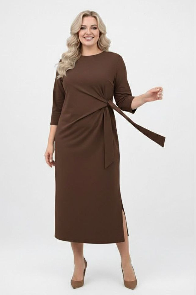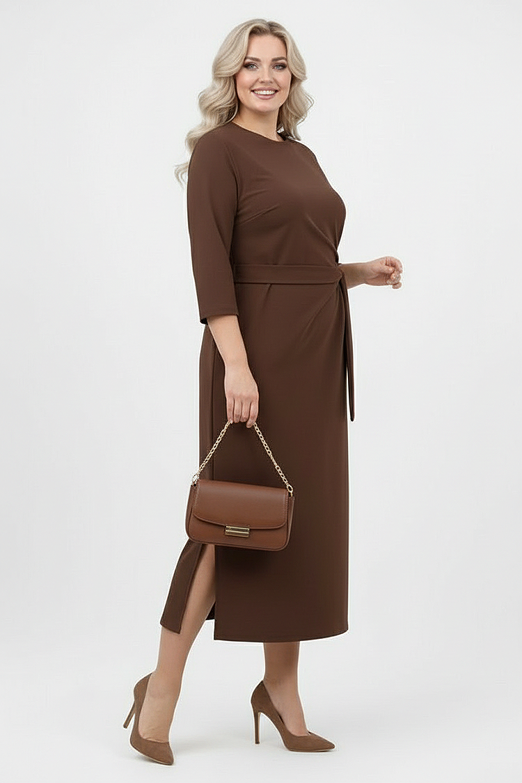 - Midi φόρεμα με μονόχρωμο μοτίβο και κομψό σχεδιασμό, κατάλληλο για διάφορους συνδυασμούς μόδας.