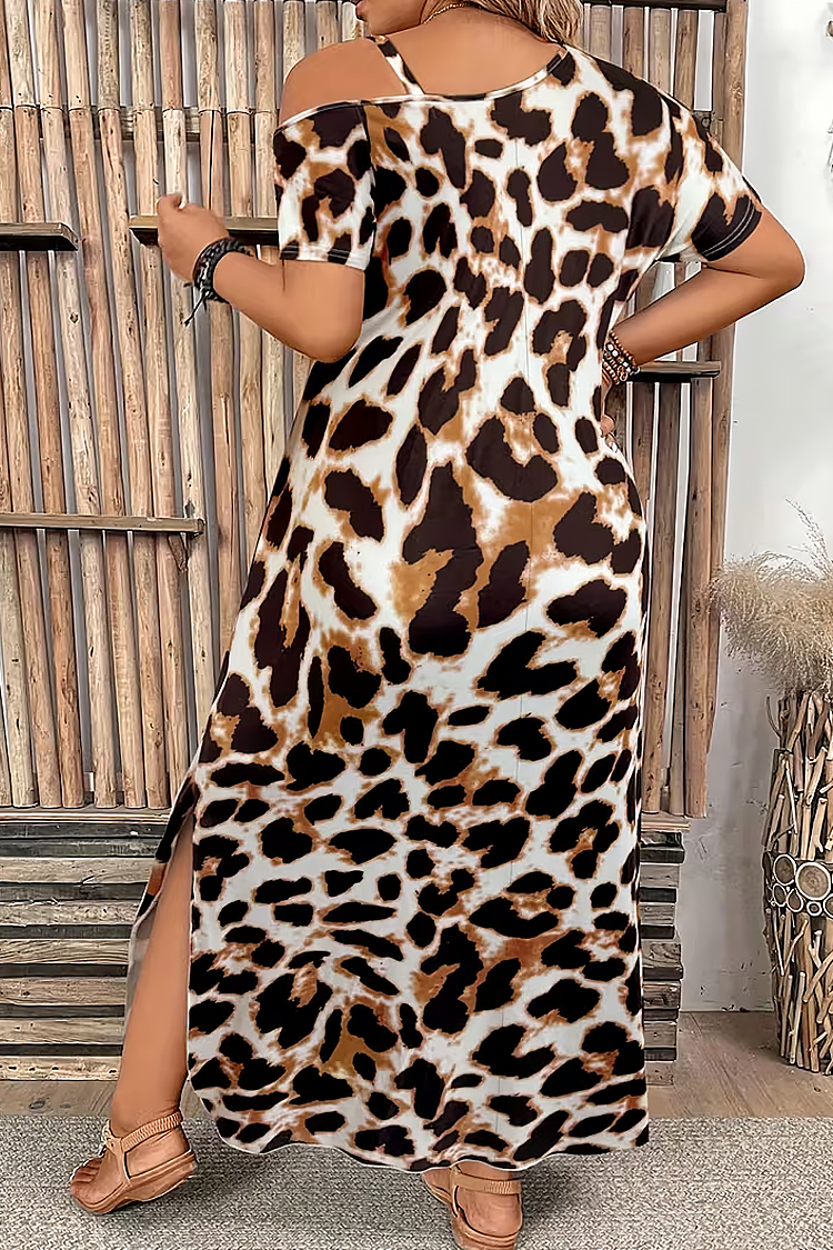 - Το μοντέλο έχει ελεύθερη γραμμή, εντυπωσιακό λεοπάρ μοτίβο και κοντό μανίκι.