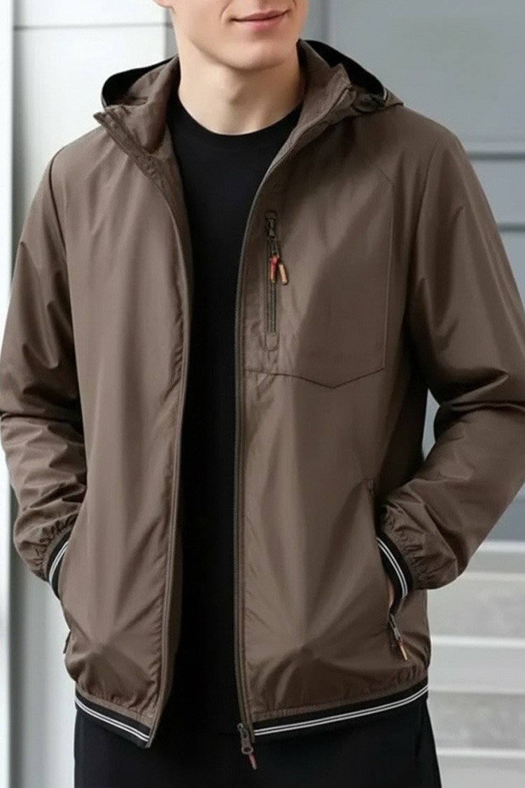 - Ανδρικό μπουφάν με κοντό μήκος και κομψό και λιτό σχεδιασμό, κατάλληλο για καθημερινή χρήση.