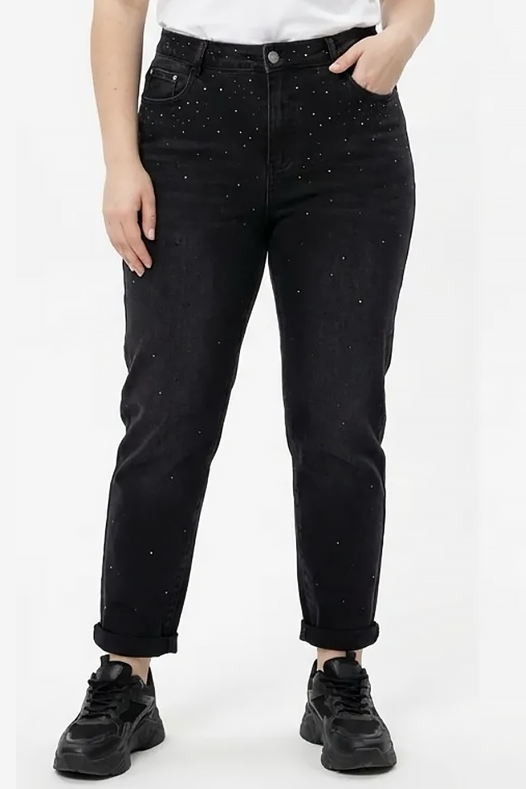 - Το μοντέλο έχει ψηλή μέση, ίσια γραμμή γυρισμένα μπατζάκια και διακοσμητικές πέτρες.