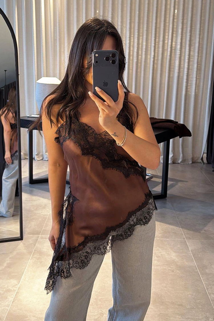 - Το μοντέλο έχει σέξι σχεδιασμό, μαύρη δαντέλα, ασύμμετρη γραμμή και λευκό χρώμα.