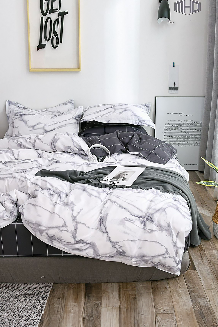 - Σετ κρεβατοκάμαρας τεσσάρων τεμαχίων με διαστάσεις 160x200 cm, κατασκευασμένο από υψηλής ποιότητας βαμβακερό σατέν.