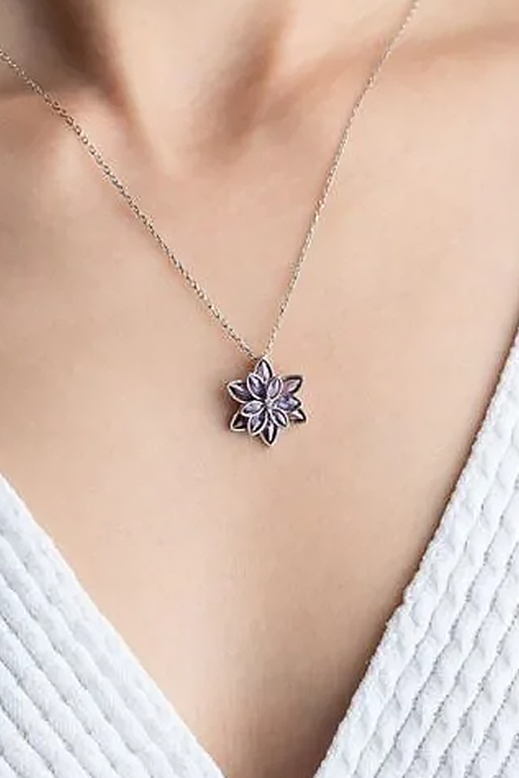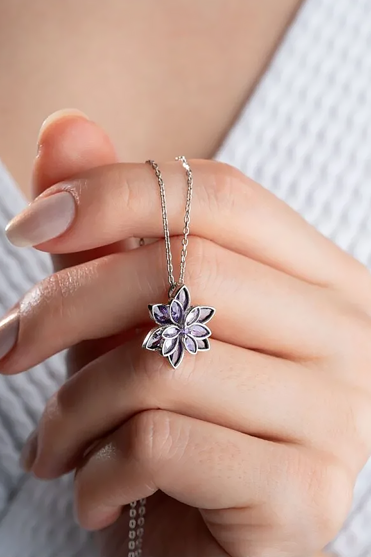 - Τονίστε τη θηλυκότητά σας με αυτό το απαλό κολιέ με μενταγιόν σε σχήμα λωτού.