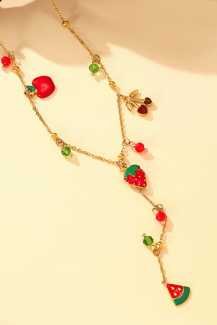 - Τονίστε τη θηλυκότητά σας με αυτό το απαλό κολιέ με κρεμαστά στο σχήμα κερασιών και φράουλων.