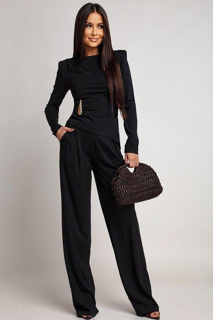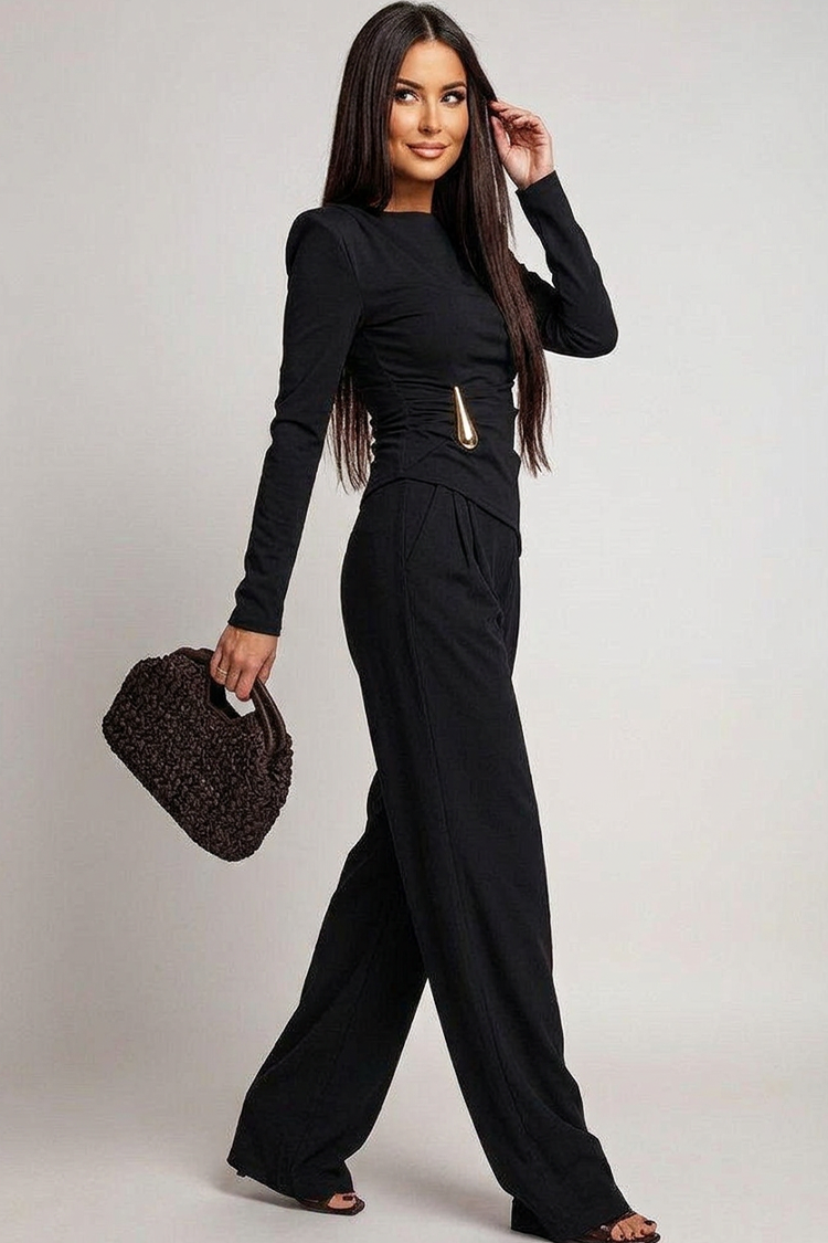 - Καθημερινό σετ από δύο κομμάτια, που αποτελείται από μπλούζα και παντελόνι σε κλασικό χρώμα.