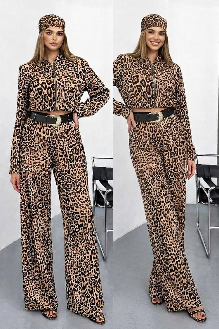 - Καθημερινό γυναικείο σετ δύο τεμαχίων με λεοπάρ μοτίβο.