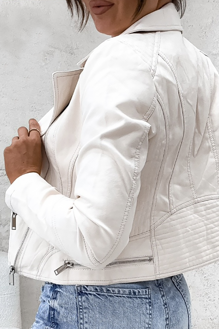 - Συμπληρώστε την εμφάνισή σας με ένα μοναδικό γυναικείο μπουφάν από οικολογικό δέρμα σε λευκό χρώμα.