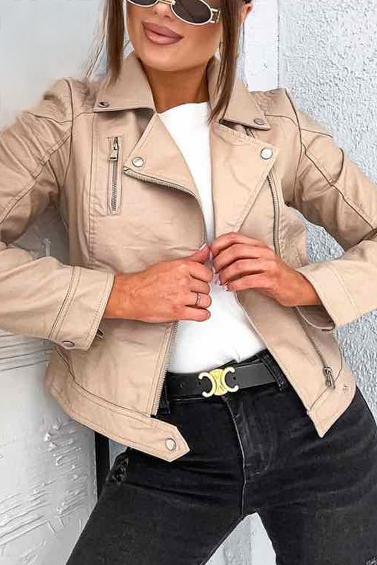 - Το μοντέλο έχει κλασική γραμμή, μαλακό οικολογικό δέρμα, εντυπωσιακό σχέδιο, φερμουάρ, κοντό μήκος και τσέπες.
