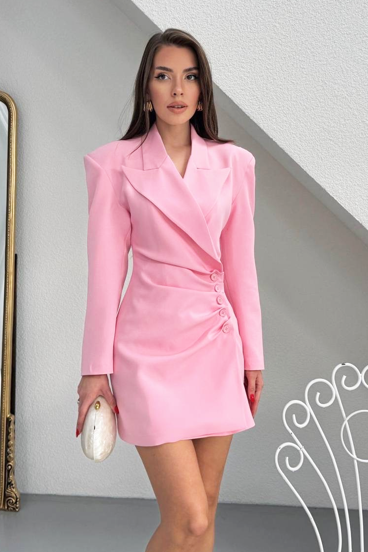 - Επιλέξτε αυτό το κοντό φόρεμα τύπου μπλέιζερ, σε ροζ χρώμα - κατάλληλο για πάρτι και ειδικές περιστάσεις.