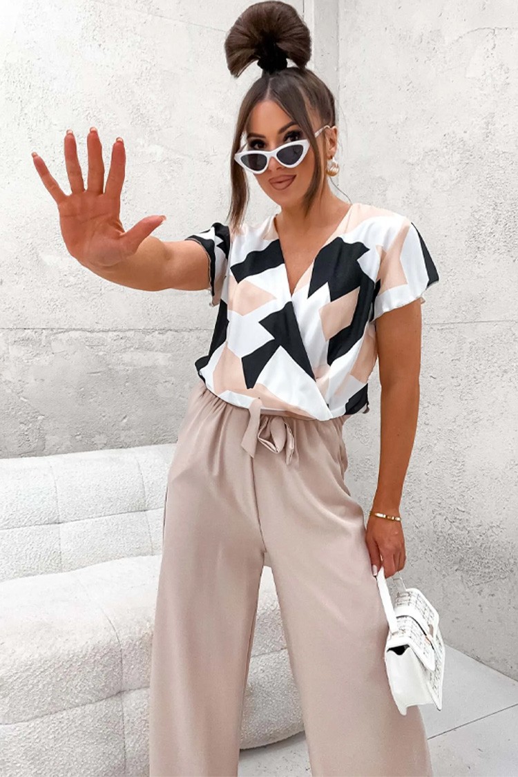 - Κομψή γυναικεία ολόσωμη φόρμα με πολύχρωμο μοτίβο, κατάλληλη για διάφορους, μοντέρνους συνδυασμούς.