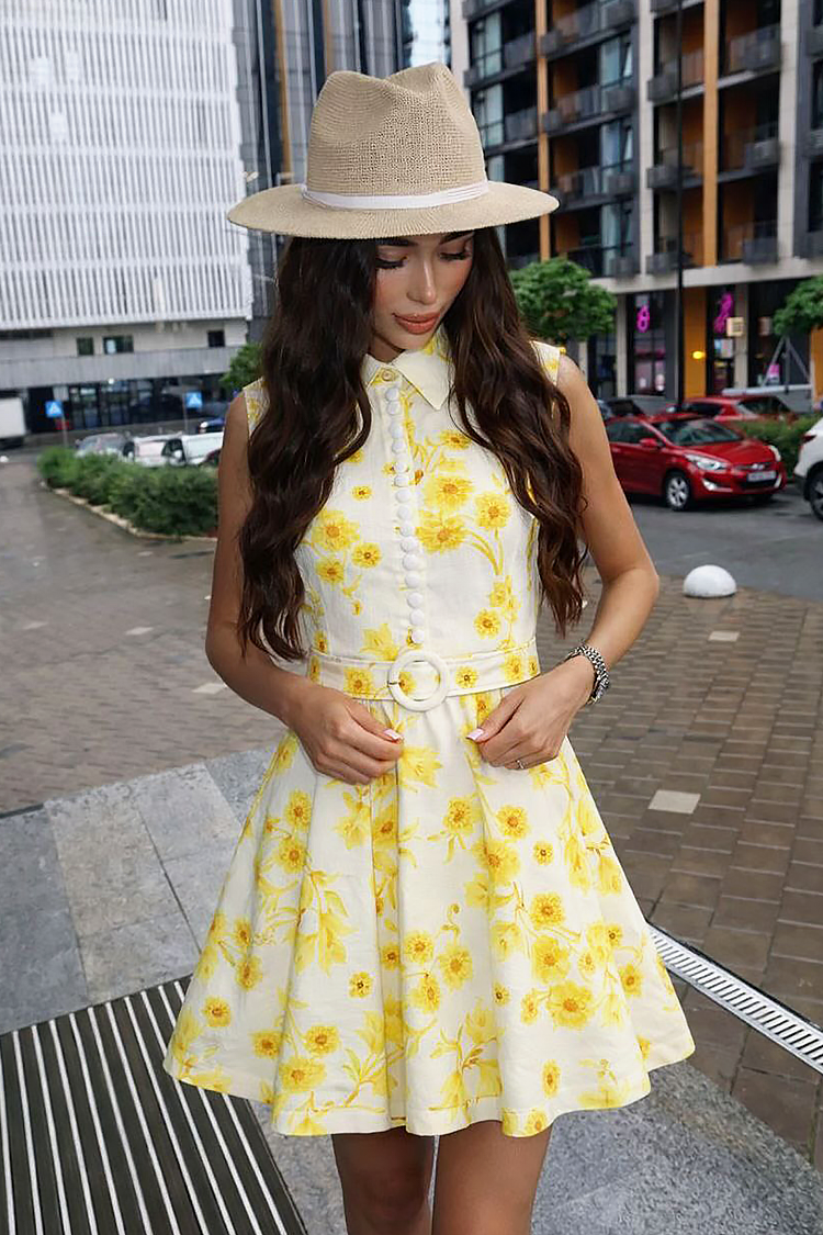 - Το μοντέλο είναι κοντό, με γιακά, κουμπιά, floral μοτίβο και ζώνη από το ίδιο ύφασμα