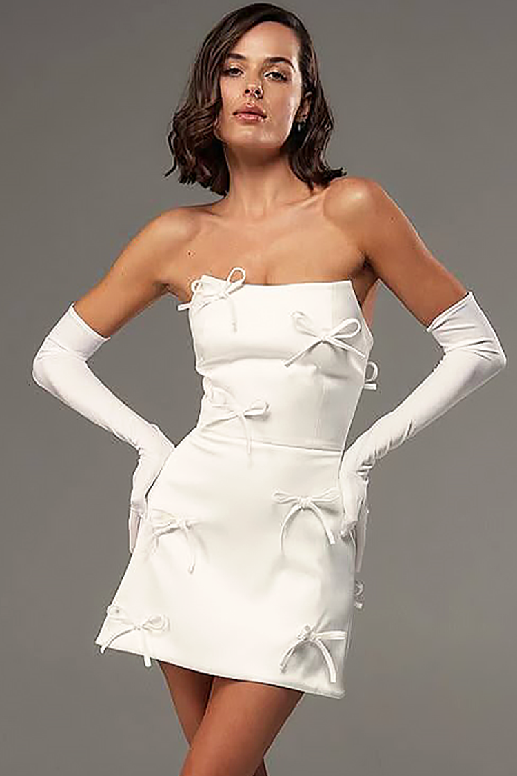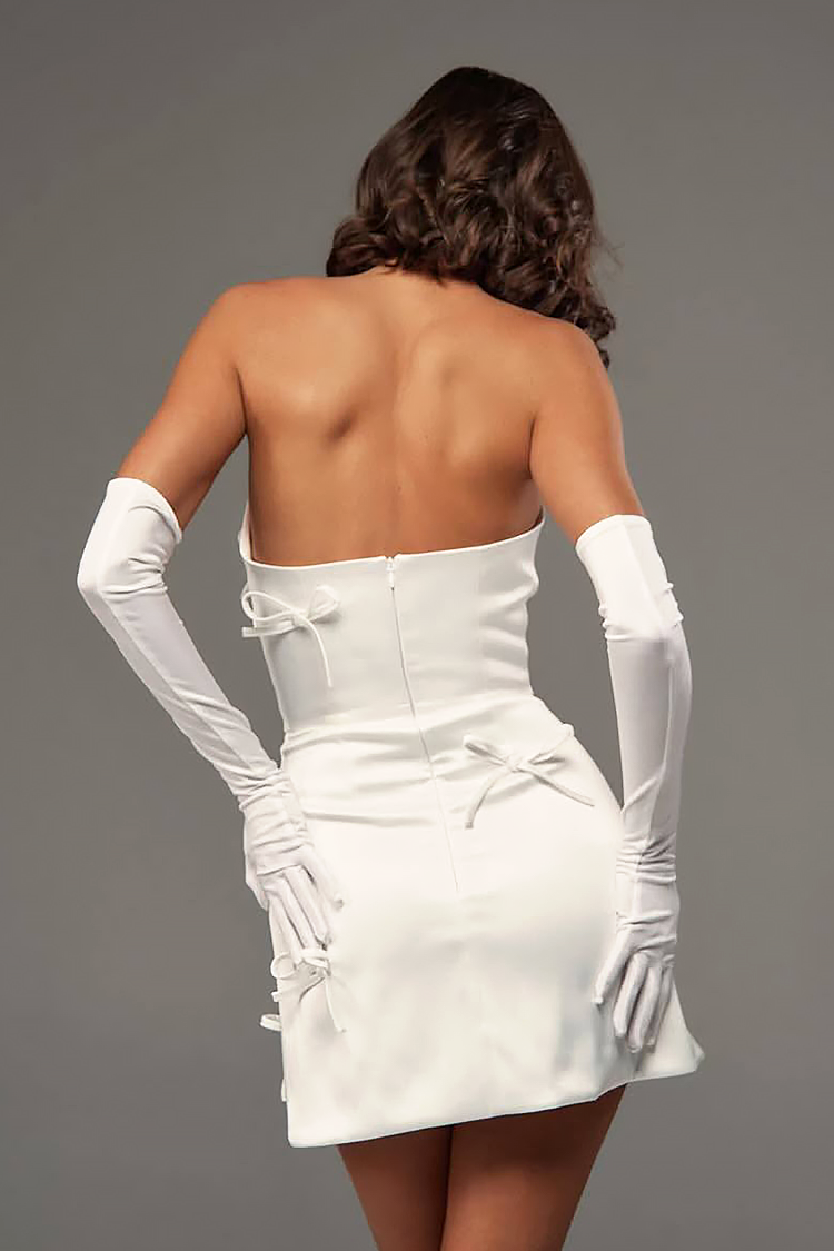 - Το φόρεμα έχει γραμμή που αγκαλιάζει το σώμα, σέξι λαιμόκοψη, κορδέλες σε όλο το μήκος και κομψά μανίκια.