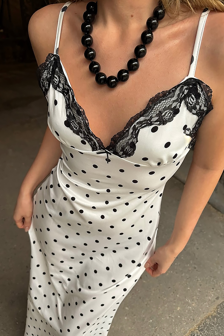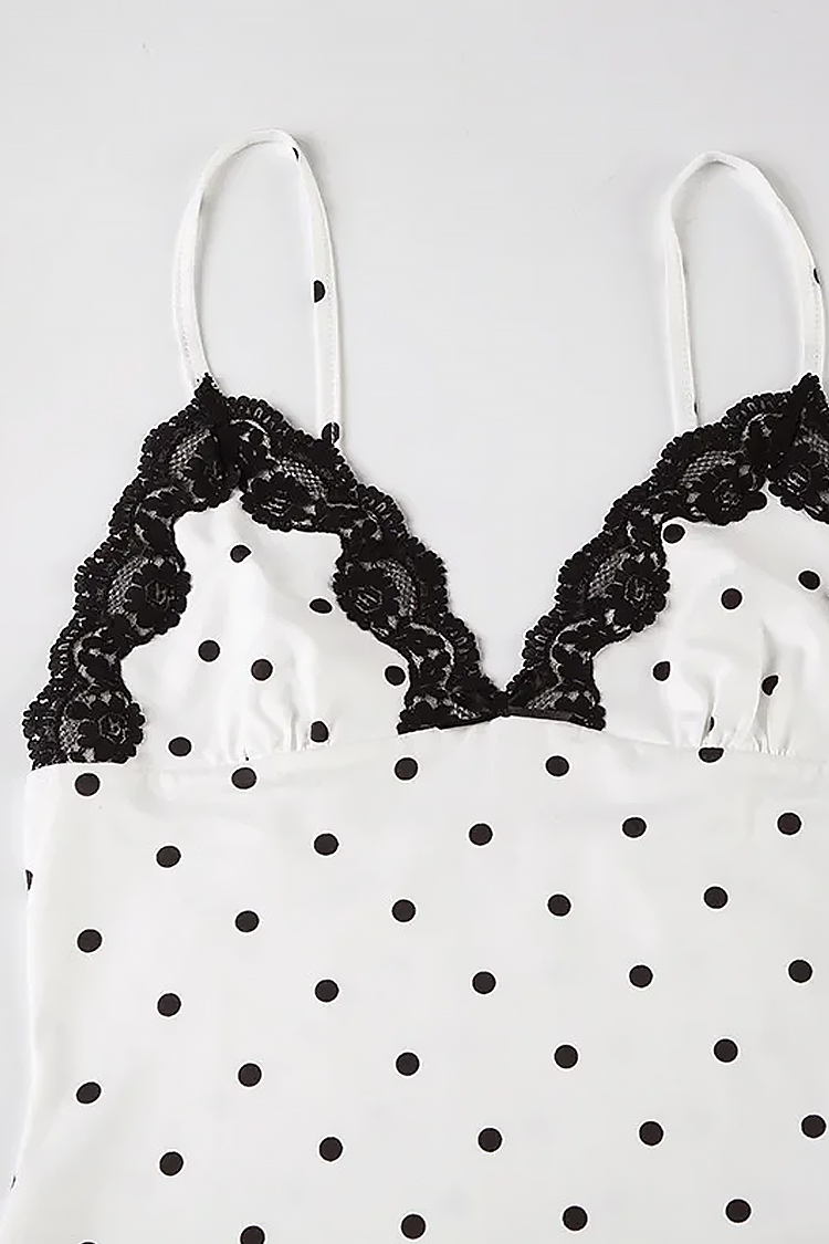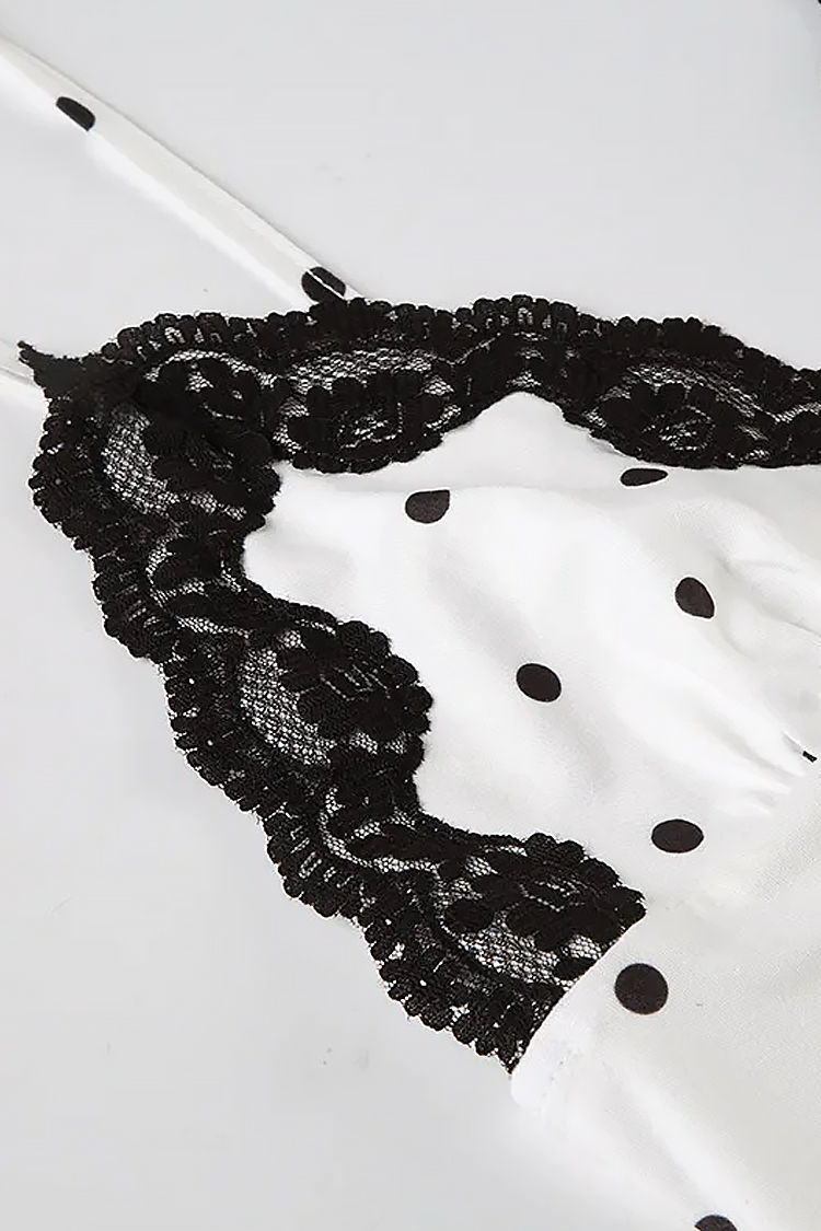 - Το μοντέλο έχει κοκέτο σχεδιασμό, πουά μοτίβο σε αντίθεση και σέξι λαιμόκοψη με δαντέλα.