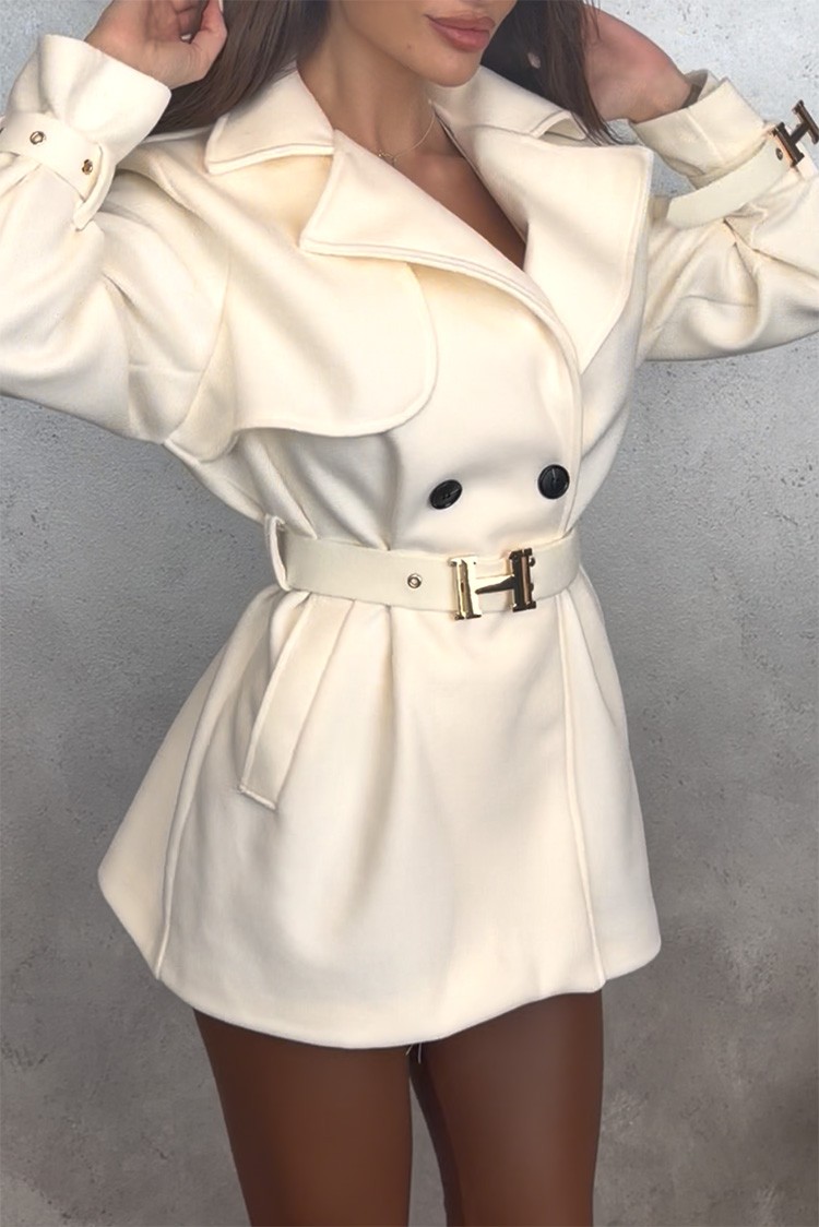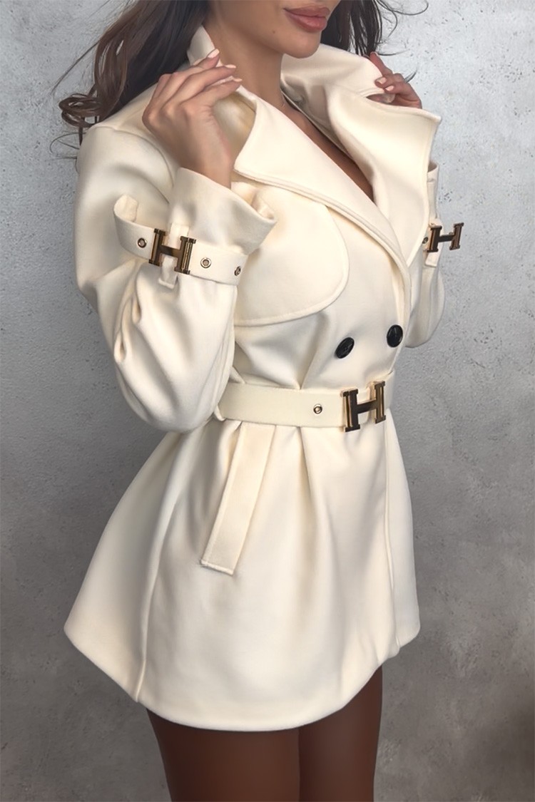 - Θα νιώσετε άνετα με αυτήν! Το μοντέλο έχει κλασική γραμμή, διπλό κούμπωμα και ζώνη.