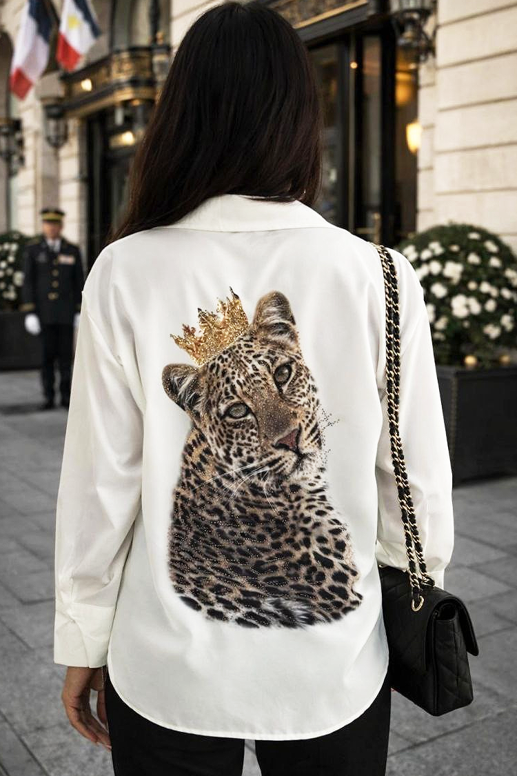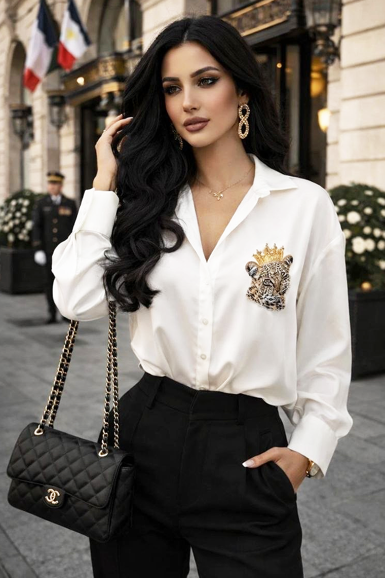 - Ελκυστικό γυναικείο πουκάμισο σε λευκό χρώμα, ιδανικό για καθημερινές μοντέρνες εμφανίσεις.