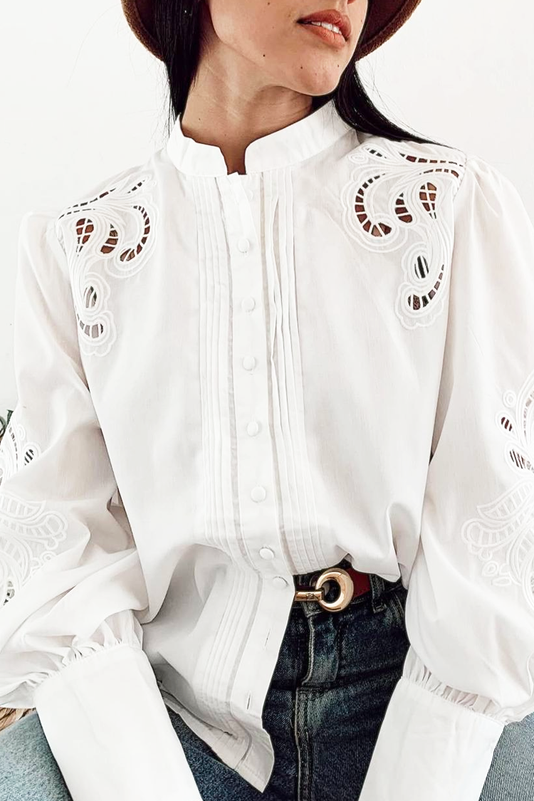- Ελκυστικό γυναικείο πουκάμισο σε λευκό χρώμα, ιδανικό για καθημερινές μοντέρνες εμφανίσεις.