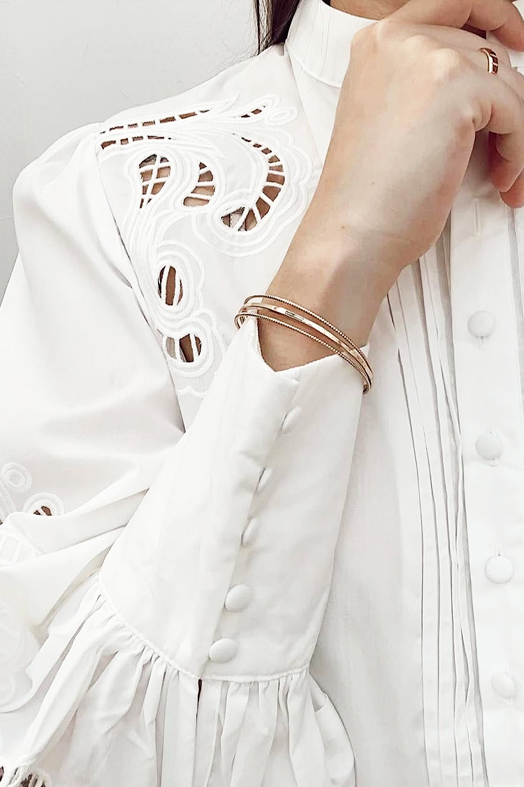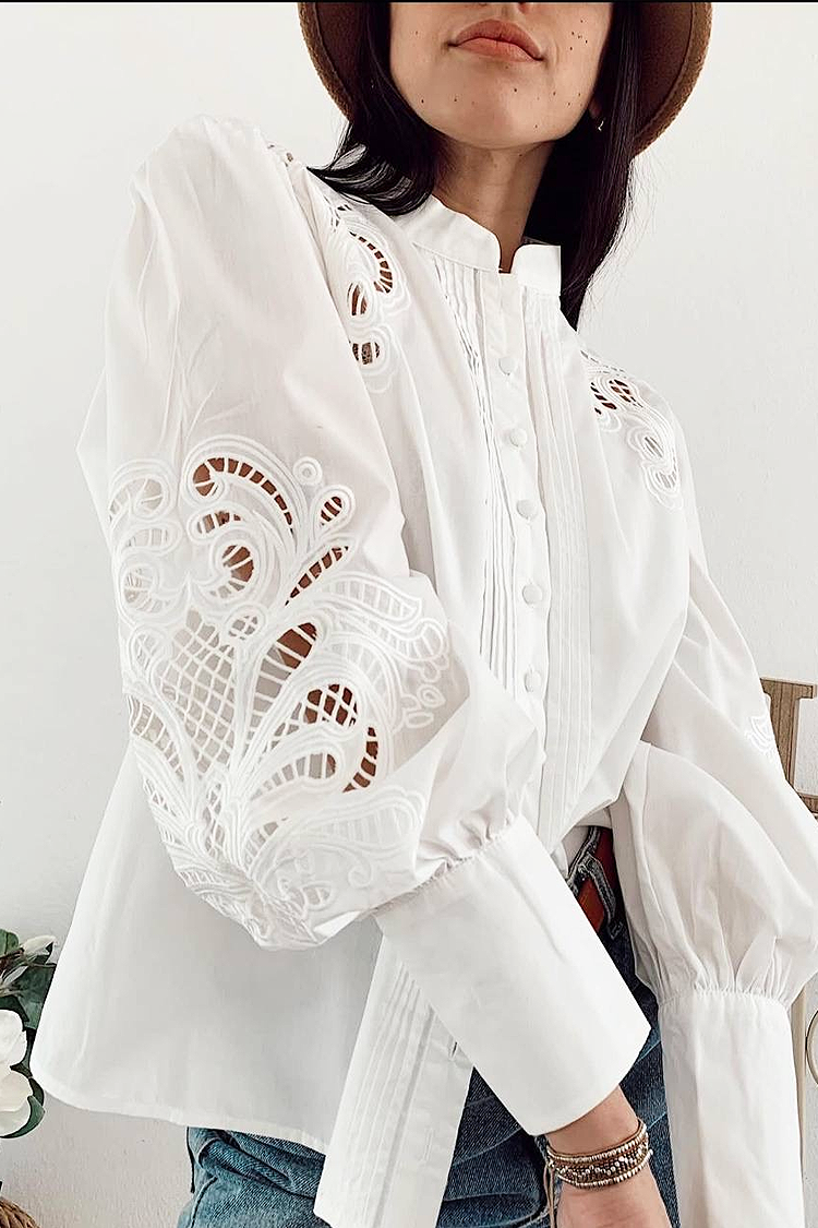 - Το μοντέλο διαθέτει κουμπιά σε όλο το μήκος, γιακά, κλασικό σχεδιασμό και μανίκια με εντυπωσιακό κέντημα.