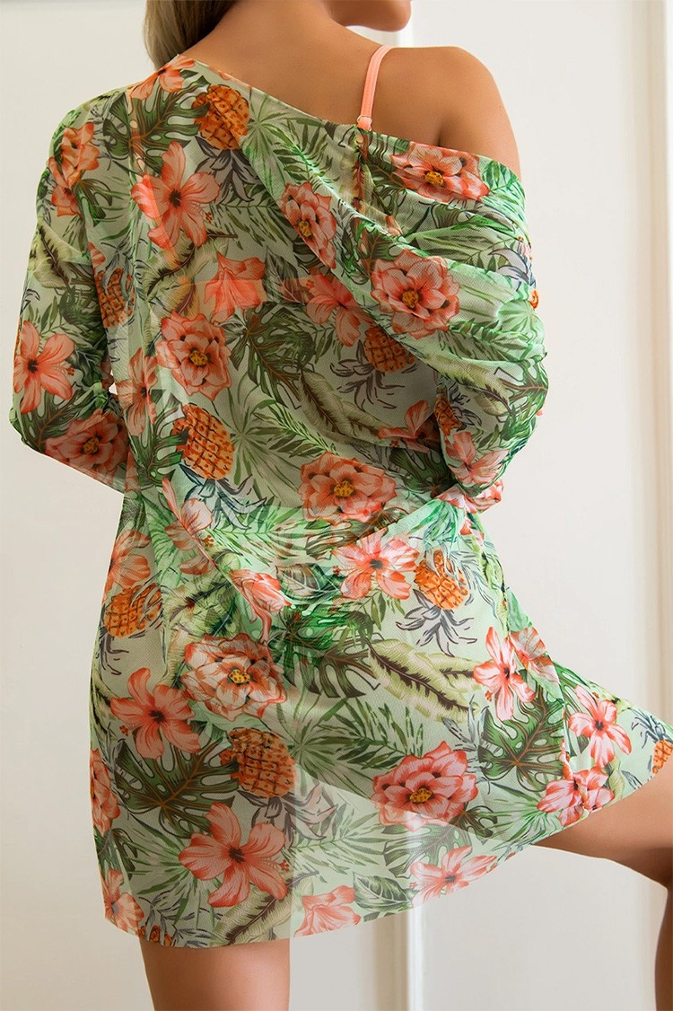 - Το κάτω μέρος έχει κλασική μέση με κομμένα στοιχεία στο μπροστινό μέρος και άνετη γραμμή. Το παρεό έχει τροπικό μοτίβο, είναι ημιδιαφανές και έχει μέση μήκος.