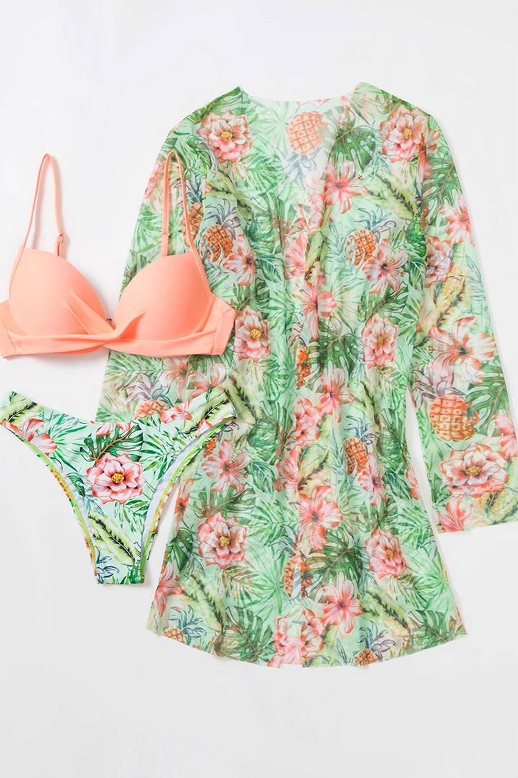 - Μια εξαιρετική επιλογή για μια κομψή εμφάνιση, με αυτό το μοντέρνο σετ μαγιό με πολύχρωμο μοτίβο.