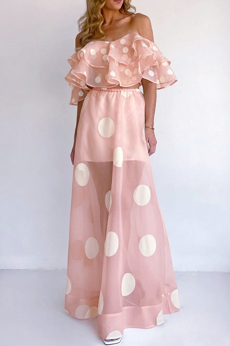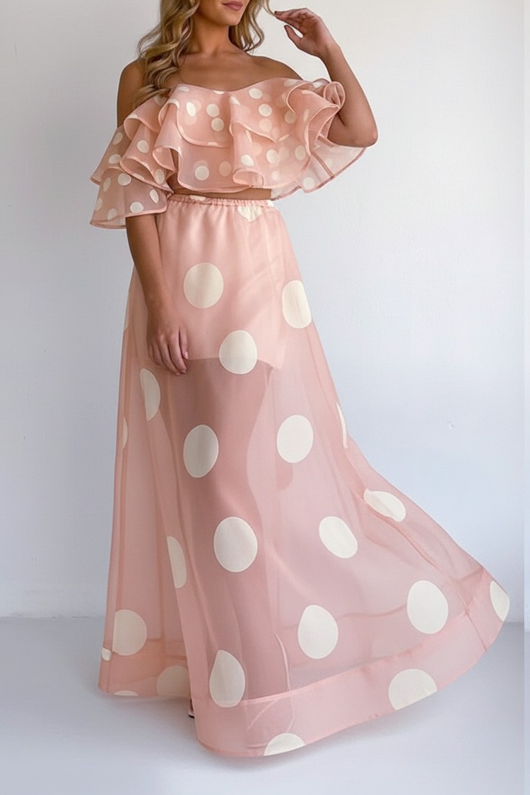 - Το πάνω μέρος είναι ένα κροπ τοπ με ασύμμετρη γραμμή και εντυπωσιακά βολάν.