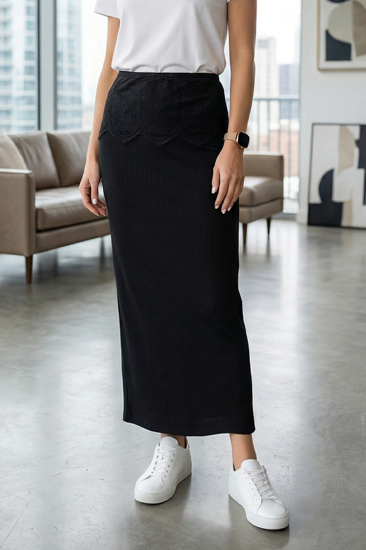 - Το μοντέλο έχει μίνι μήκος, εφαρμοστή γραμμή, δαντελένια λεπτομέρεια και είναι μαύρο.