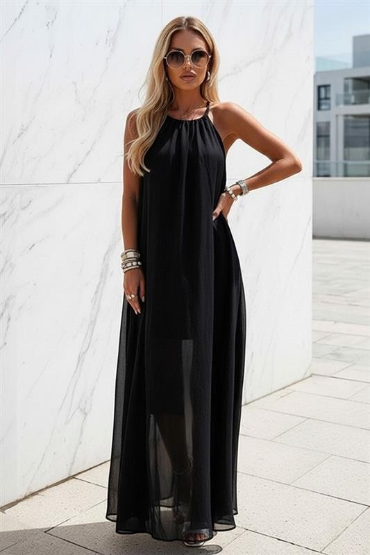 - Για μια μοντέρνα και καθημερινή εμφάνιση, επιλέξτε αυτό το μακρύ φόρεμα με ελκυστικό σχεδιασμό και μαύρο χρώμα.