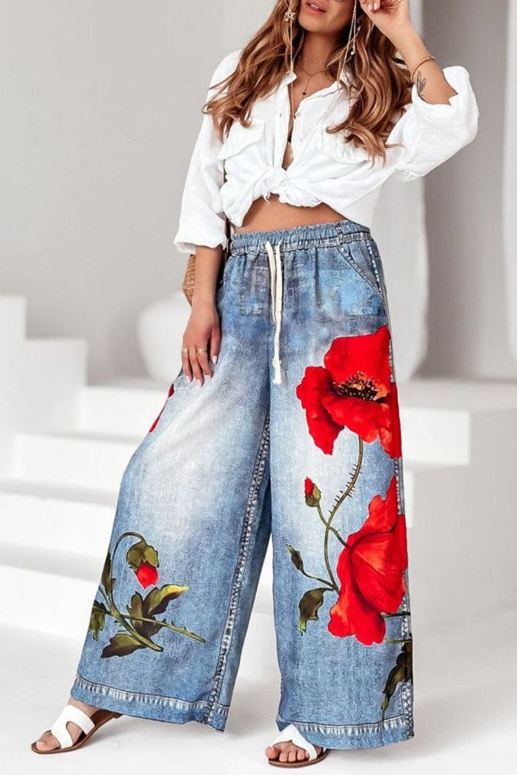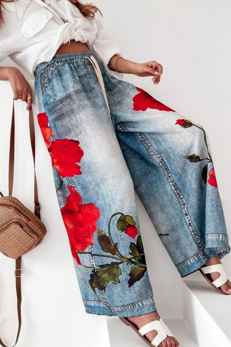 - Το μοντέλο διαθέτει ψηλή και ελαστική μέση, κορδόνια ρύθμισης, floral μοτίβο και πλαϊνές τσέπες.