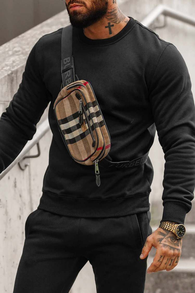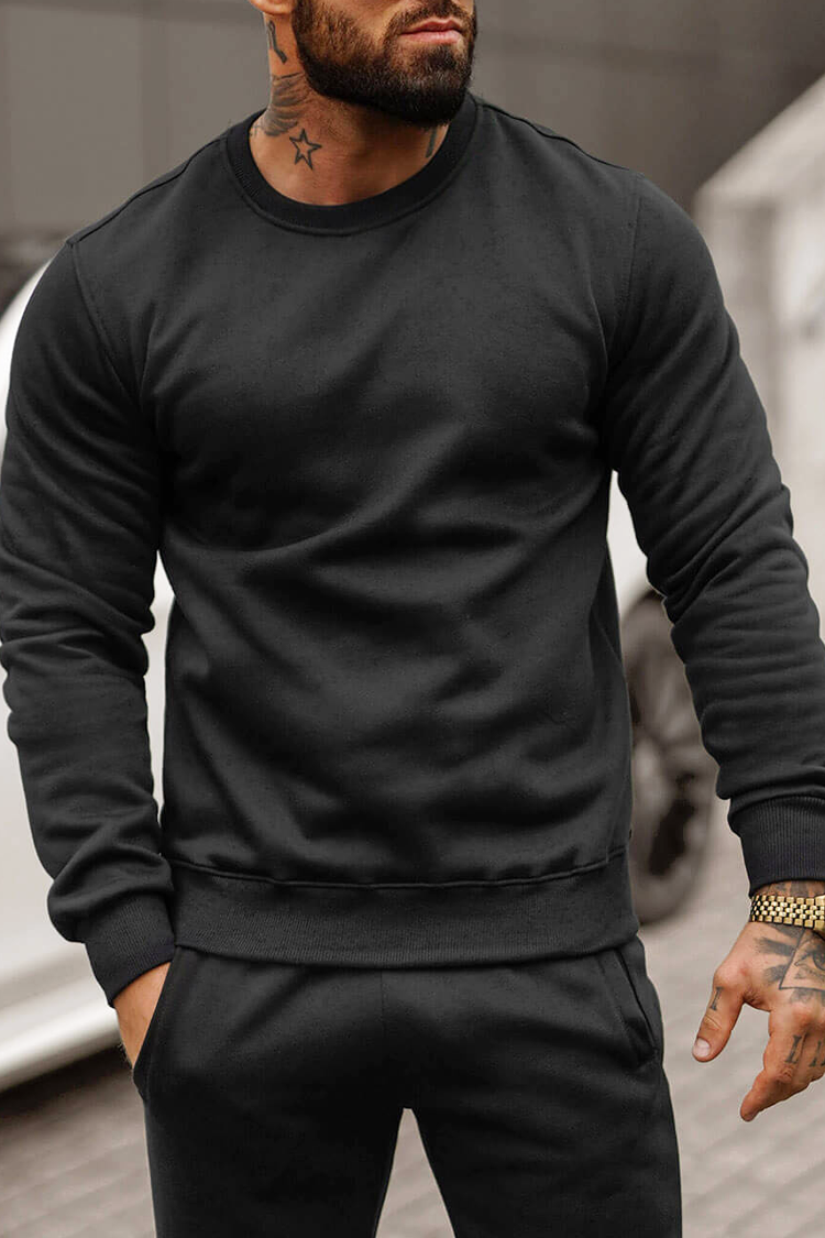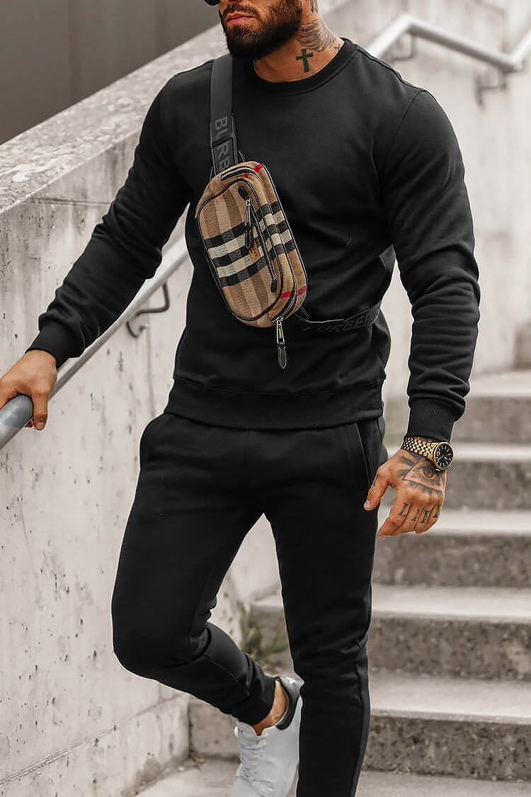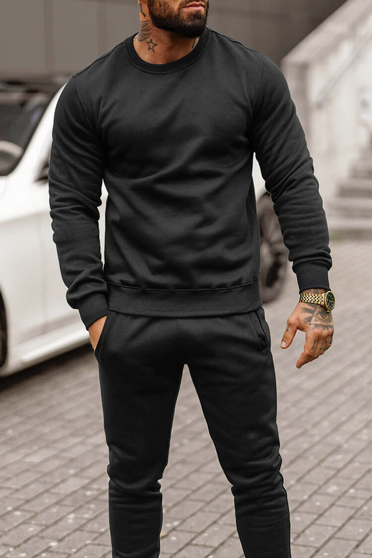 - Άνετο ανδρικό αθλητικό σύνολο δύο τεμαχίων, σε κλασικό χρώμα και σε κλασικό σχέδιο.